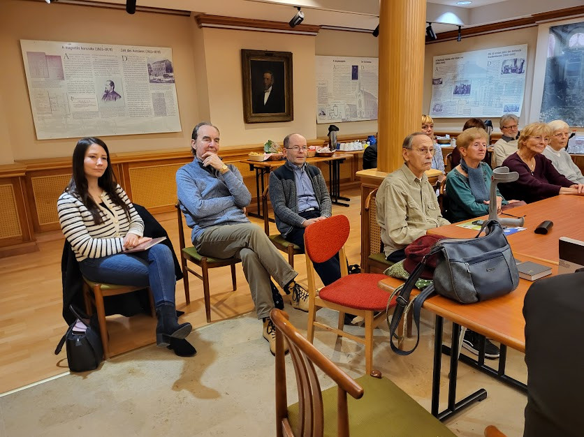 Az est hagyományosan áhítattal kezdődött, amit Demeter János ref. lelkész tartott (Hódmezővásárhely). Megemlékeztünk az előző évben elhunytakról: Cornides István neves fizikus özvegye Magdi 90+ éves korában hunyt el. Csillag Bálint gimn.tanár,, aki a Dél-Szepességről közölt sokrészes ismertetőket a levelezőlistán, temetésén Tiszakécskén a kör nevében búcsúztattam. Kiss Gy. Csaba, aki a szepesi vándorkiállítás és Deák téri evang.múz. kiállítás megnyitóját tartotta. Wieland Anna (Poprád), aki a Szepességen élő magyarok egyik utolsó képviselője, a neves farkasfalvi Wieland-család leszármazottja, a késmárki temetőben többi családtagja mellé temették. Dr.Zsigmond Károly (Marosvásárhely, a napokban hunyt elé 93 évesen), a Genersich-családról aprólékos genealógiai könyvet írt , kiadta felesége, Szépréti Lilla poszthumusz „Család-regény”-ét (egy cipszer család Erdélybe településéről és történetéről) .